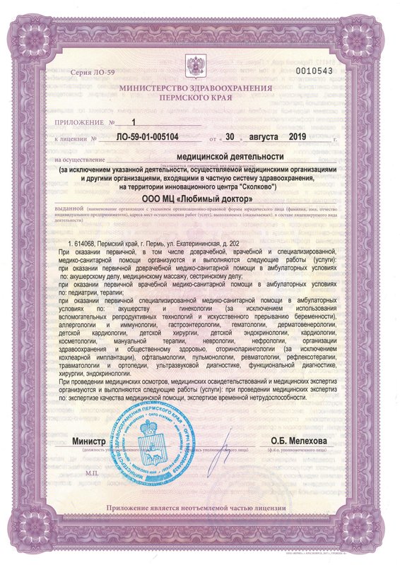 Медицинский центр Любимый доктор - это многопрофильное медицинское учреждение, предлагающее индивидуальный комплекс процедур для каждого клиента. В клинике всё организовано с учетом комфортного пребывания посетителей. Оснащение центра помогает провести диагностику организма пациента для составления плана лечения и профилактики. В клинике работают отделения анестезиологии, психиатрии, общей терапии, кардиологии, ревматологии, гастроэнтерологии, гепатологии, пульмонологии, аллергологии, иммунологии, нефрологии, гематологии, лечения инфекционных заболеваний, паразитологии, неврологии, эндокринологии, дерматологии, урологии, колопроктологии, гинекологии, маммологии, онкологии, психотерапии, наркологии, офтальмологии, оториноларингологии, педиатрии, неонатологии, логопедии, ортопедии. Наши специалисты имеют профильное медицинское образование и внимательно отнесутся к каждой вашей просьбе. Доверяя заботу о своем здоровье нам, вы можете не сомневаться в положительном результате. Также мы поможем с составлением диеты и коррекцией веса.